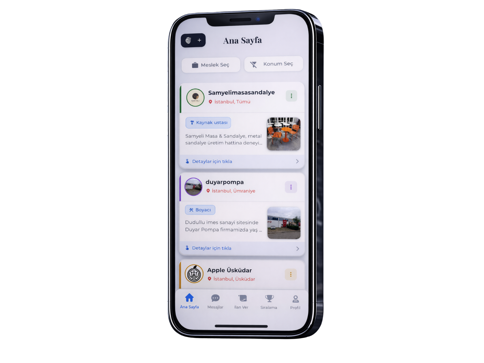 İlanları filtreleyin ve arama sonuçlarını özelleştirin: kategoriye, konuma veya fiyat aralığına göre arama yaparak ihtiyacınıza uygun işleri hızlıca bulun.